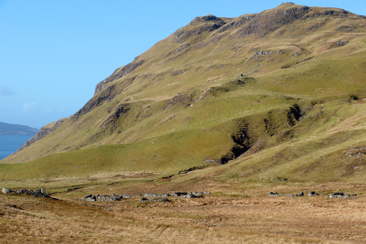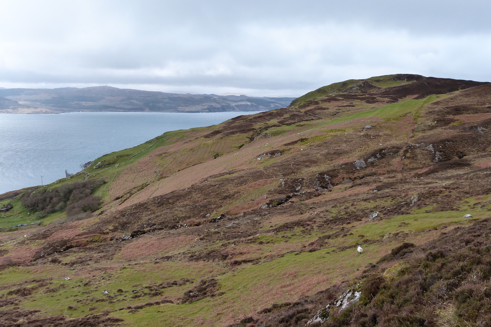 This picture was taken from the common grazings at the back of the crofting township of Ormsaigbeg, looking southwest towards a low hill called Maol Buidhe, with the Sound of Mull beyond. At this...